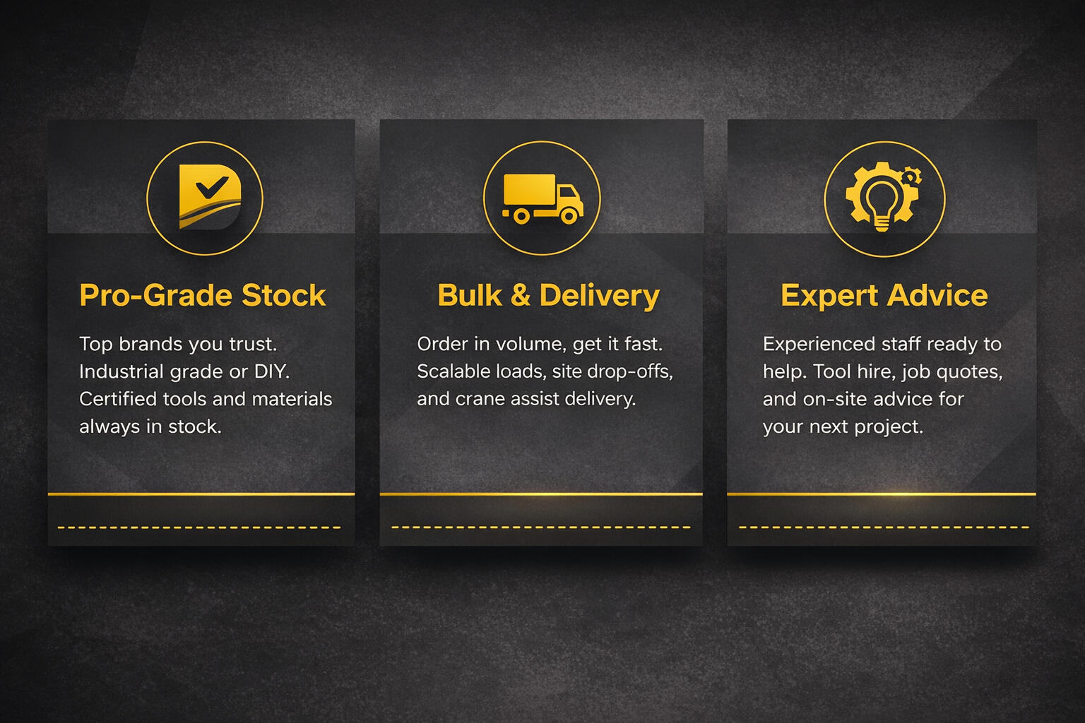 We supply it all — building materials, power tools, cleaning gear, fasteners, appliances, and more. Whether you're breaking ground or upgrading your living room, we've got real products for real people, ready when you are. No fluff, just solid stock, strong brands, and staff who know their stuff. Tap in. Build better.